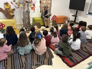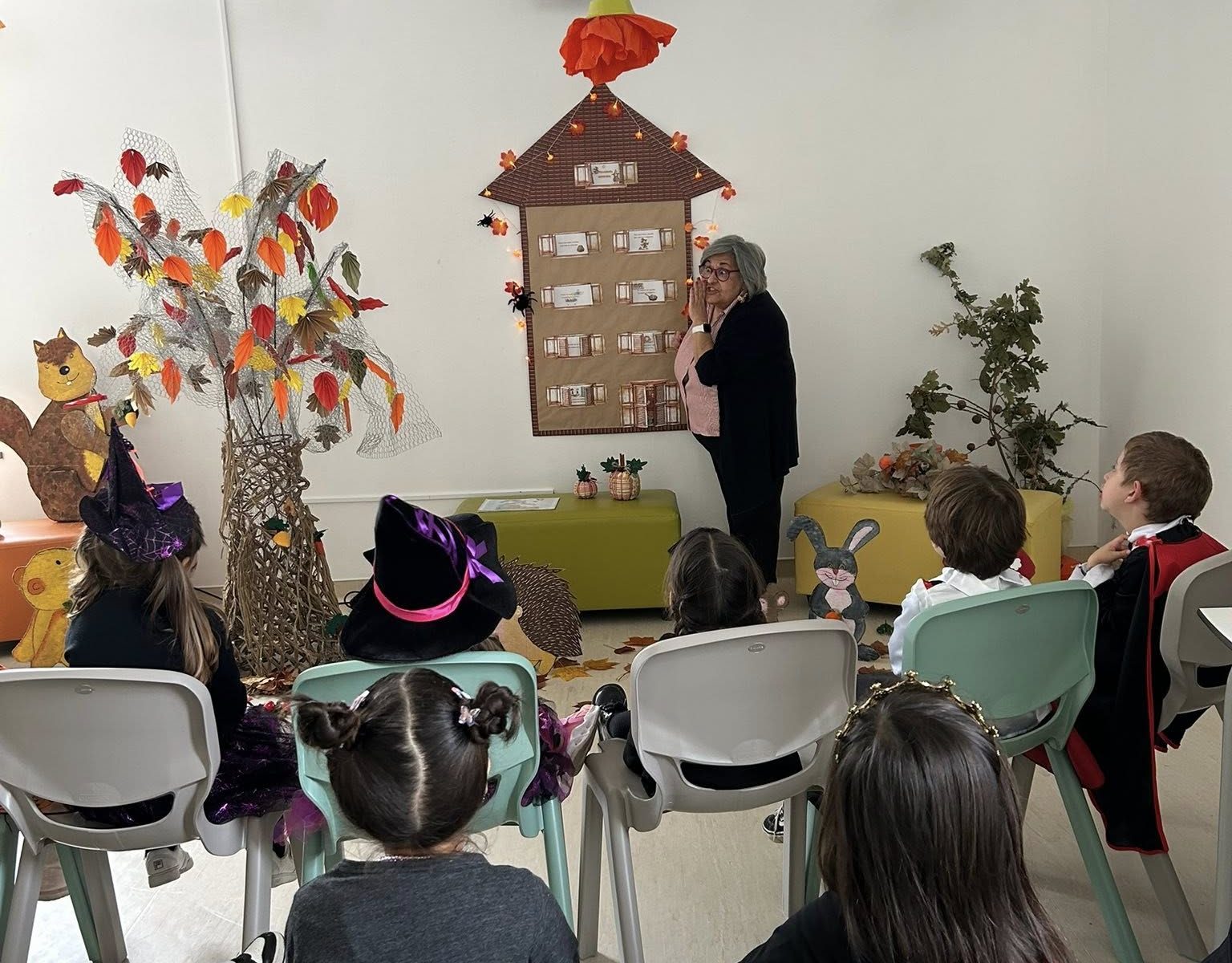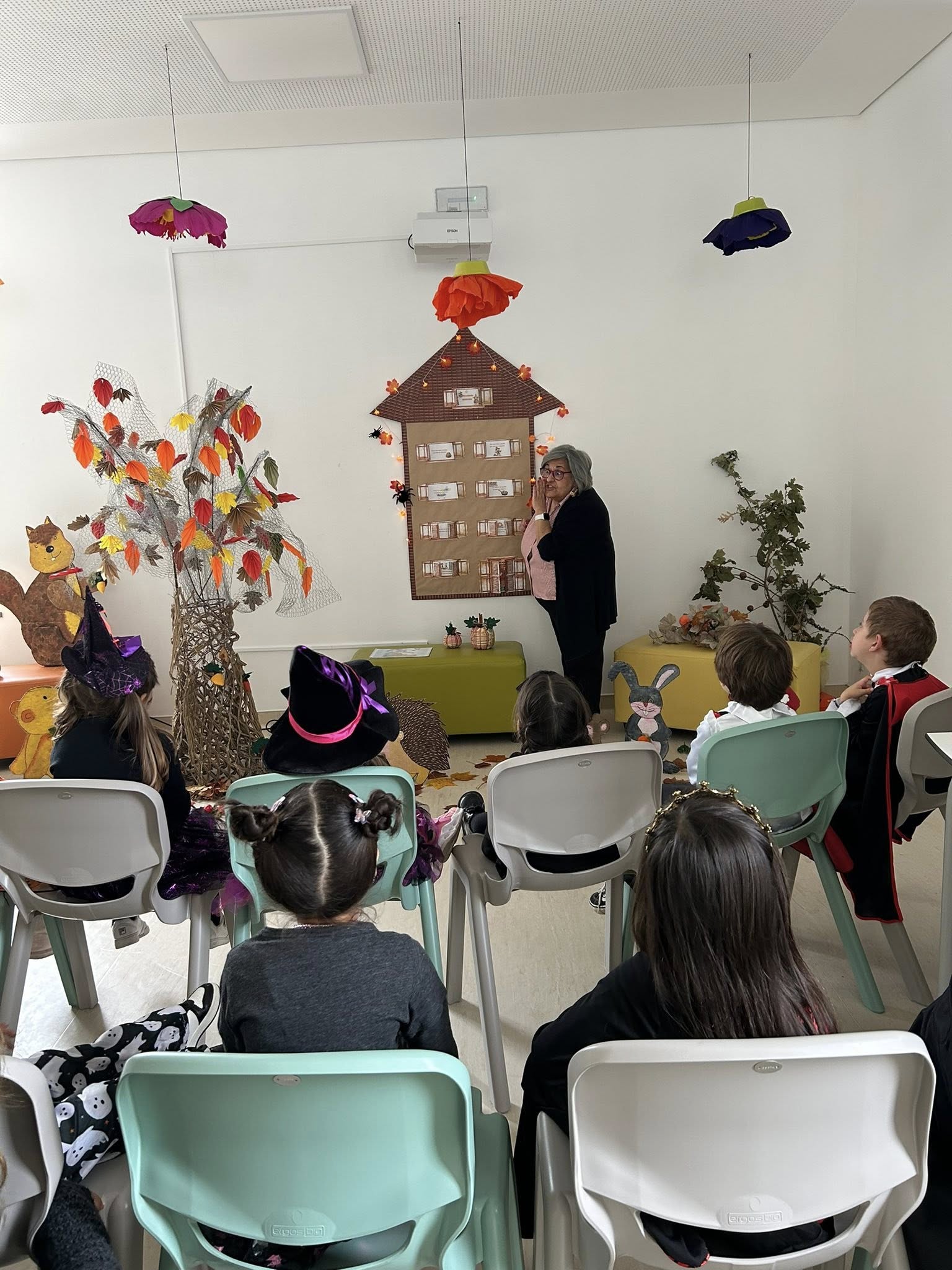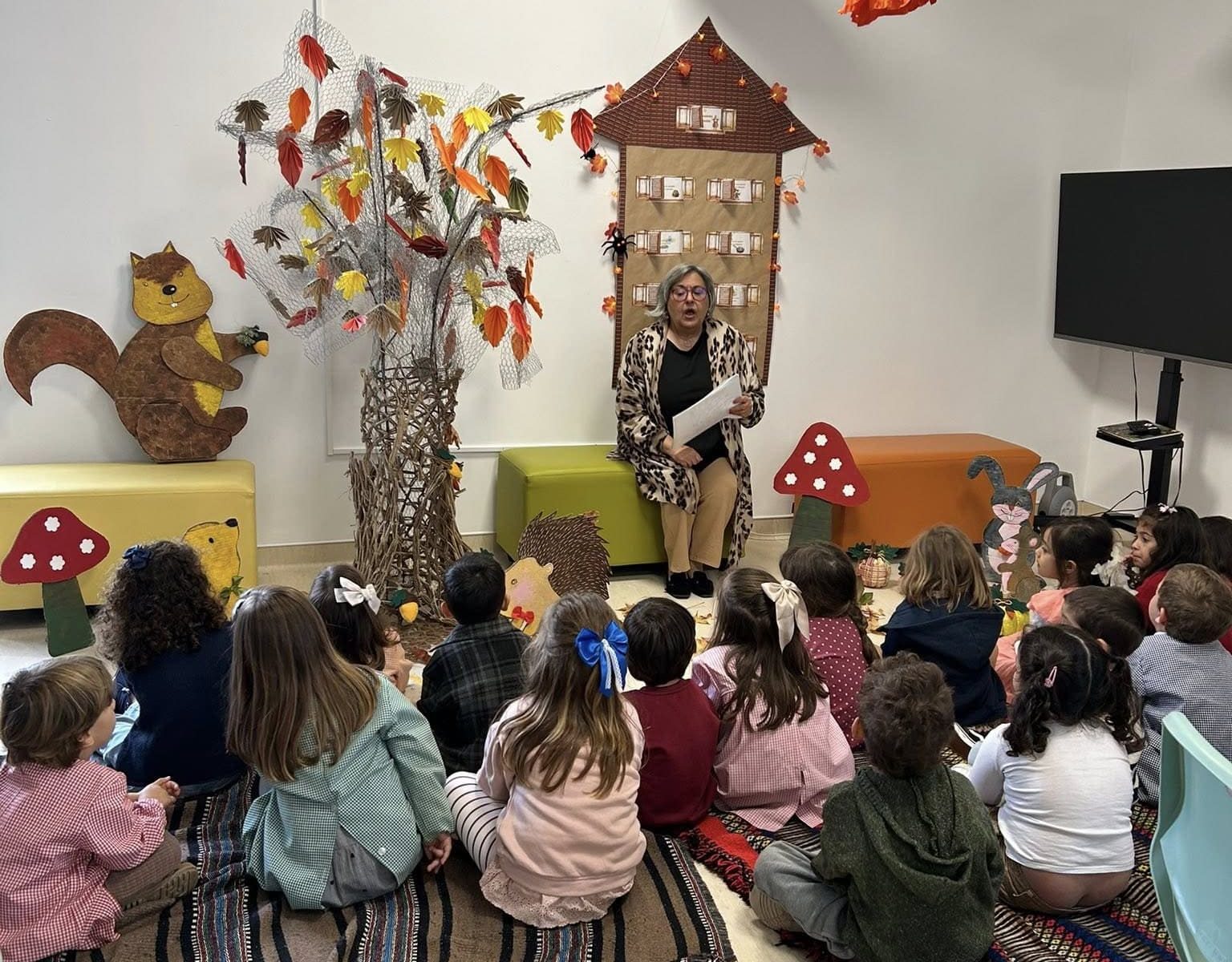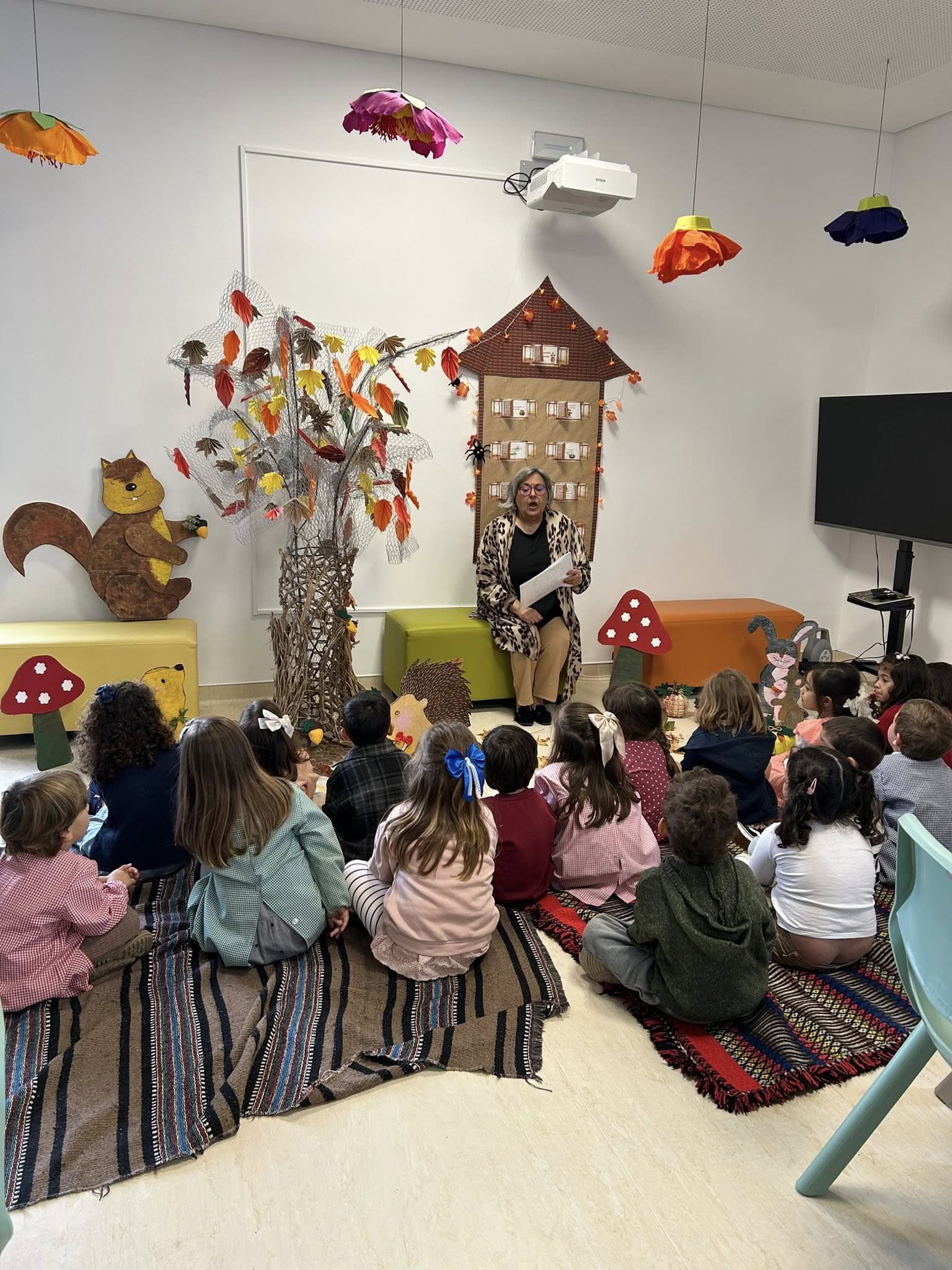 A professora São contou a história “A magia da estrela de outono” aos alunos da Pré 1. Ainda houve tempo para colarem umas folhas de outono num cartaz coletivo!