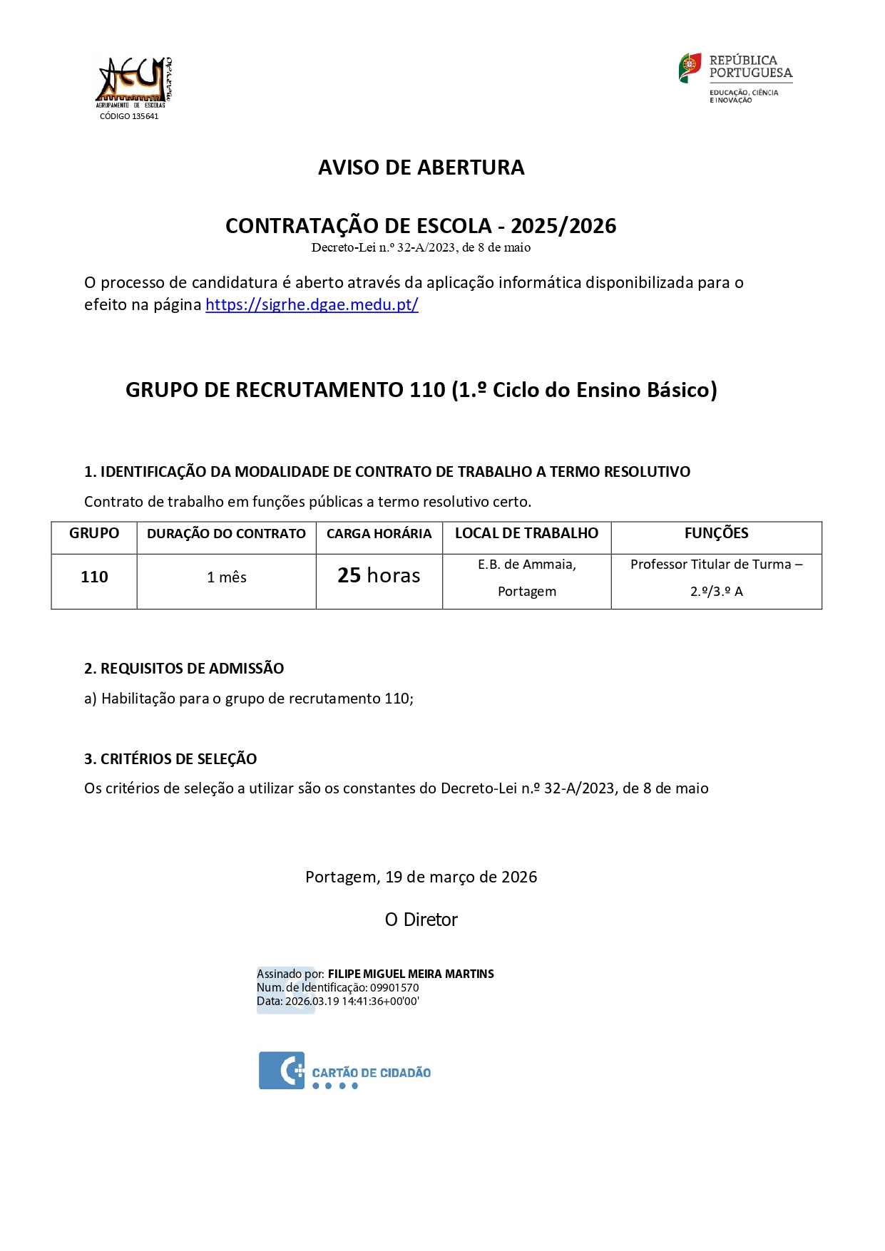 AVISO DE ABERTURA – CONTRATAÇÃO DE ESCOLA – 2025/2026